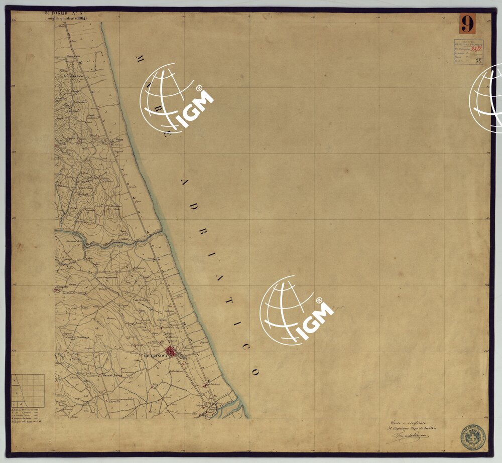 Sono 167 tavolette montate su tela o seta, copiate e messe in netto all’Officio Topografico di Napoli su le levate eseguite dal 1834 al 1860 per la formazione della Carta del Reame di Napoli alla scala di 1:80.000. L’esecuzione di questa carta venne decretata nel 1814: essa fu però iniziata, dati i movimenti politici di quell’epoca, soltanto nel 1833. Queste tavolette si riferiscono ai fogli 1, 5, 8, 9, 12, 13, 17-19, 28, 29, 33 della suddetta carta la quale doveva essere disegnata ed incisa su rame a bulino in fogli rettangolari con orografia a tratteggio e curve di livello tracciate alla equidistanza di 10 passi (m. 18,52) o di 52 passi (m. 92,60). Di essa peraltro furono pubblicati solamente cinque fogli, cioè: Napoli, Caserta, Gaeta, Leonessa, Cittaducale, tra il 1861 e 1870. L’I.G.M. conserva i rami dei primi tre di questi fogli. La carta all’80.000, pregevolissima per valore artistico e scientifico, venne giudicata superiore alle altre produzioni cartografiche contemporanee non solo italiane, ma europee (cfr. Mori A., La cartografia ufficiale in Italia e l’I.G.M. 1922, pag.107).