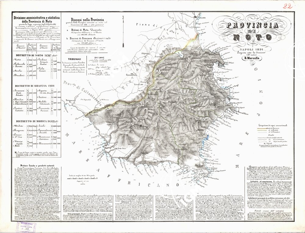 CARTA AMMINISTRATIVA DEL REGNO DELLE DUE SICILIE DIVISA IN SINGOLE PROVINCIE – Foglio 22 – Provincia di Noto