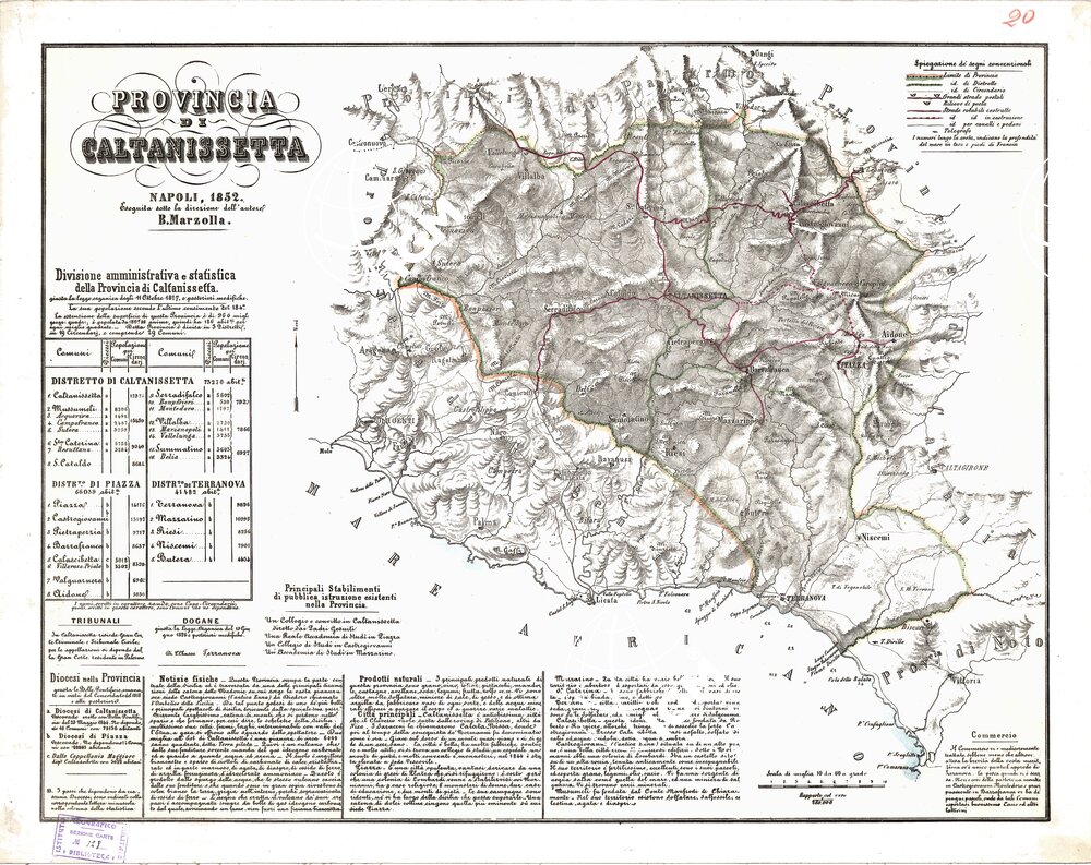 CARTA AMMINISTRATIVA DEL REGNO DELLE DUE SICILIE DIVISA IN SINGOLE PROVINCIE – Foglio 20 – Provincia di Caltanissetta