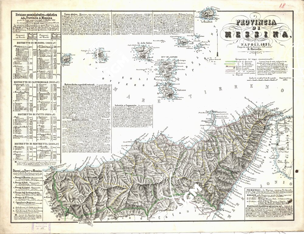 CARTA AMMINISTRATIVA DEL REGNO DELLE DUE SICILIE DIVISA IN SINGOLE PROVINCIE – Foglio 18 – Provincia di Messina