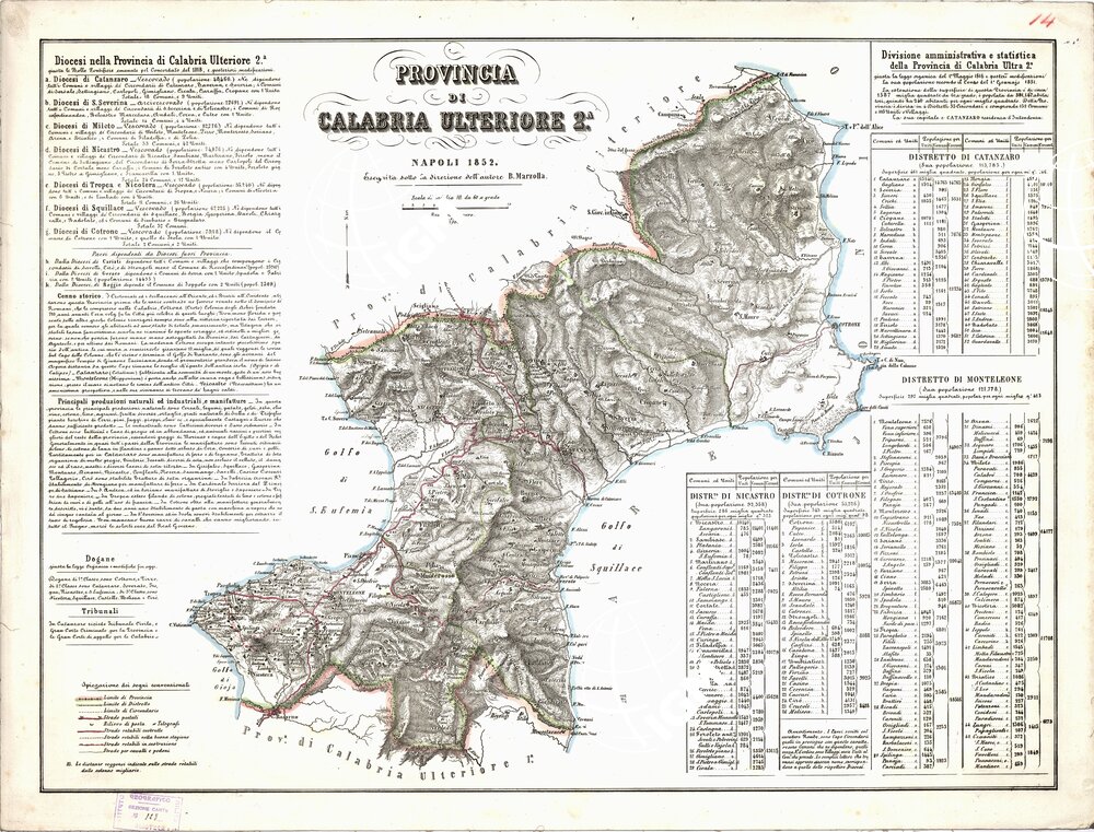 CARTA AMMINISTRATIVA DEL REGNO DELLE DUE SICILIE DIVISA IN SINGOLE PROVINCIE – Foglio 14 – Provincia di Calabria Ulteriore 2^