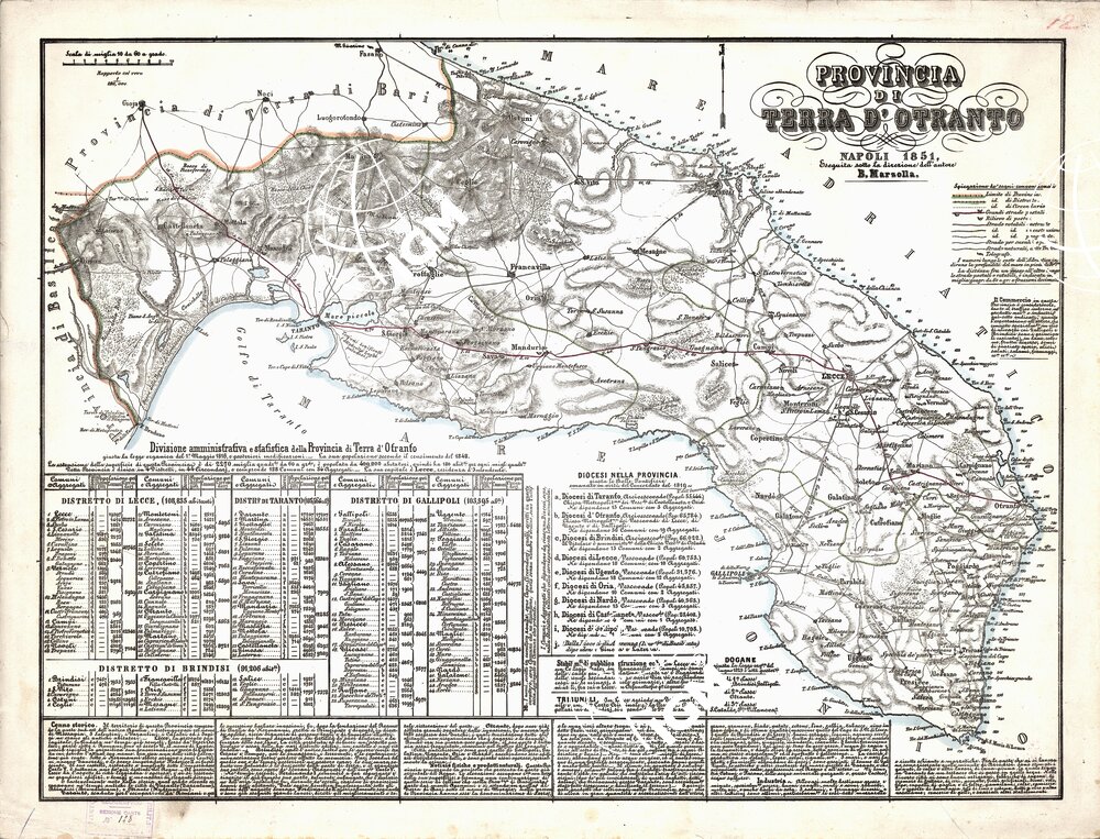 CARTA AMMINISTRATIVA DEL REGNO DELLE DUE SICILIE DIVISA IN SINGOLE PROVINCIE – Foglio 12 – Provincia di Terra d’Otranto