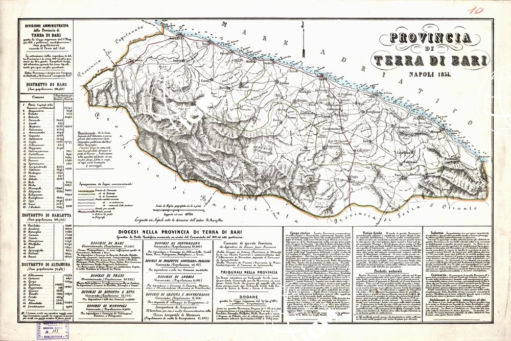 CARTA AMMINISTRATIVA DEL REGNO DELLE DUE SICILIE DIVISA IN SINGOLE PROVINCIE – Foglio 10 – Provincia di Terra di Bari