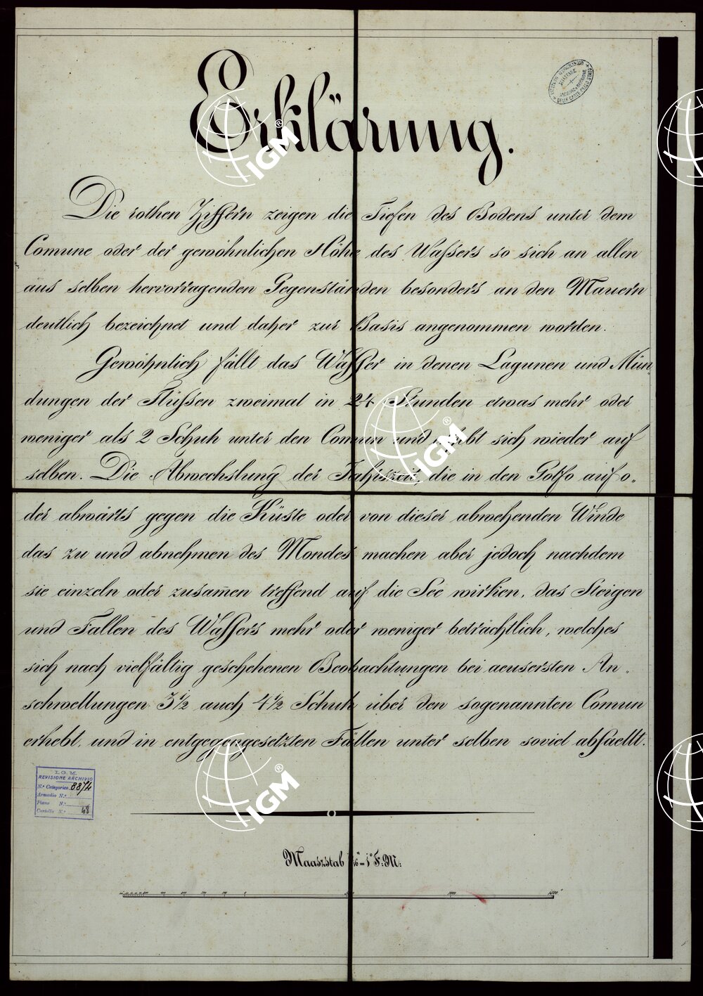 PLAN DER SEE-STADT ADT UND FESTUNG VENEDIG SAMMT HREN LAGUNEN UND DEM DIESE UMGEBEN DEN FESTEN LANDE VON DER MUNDUNG DER ETSCHRIS ZU JENER DER PIAVE. + CENNI SULLA COSTRUZIONE DELLA CARTA ANNO 1849 – FOGLIO 20 DOCUMENTAZIONE