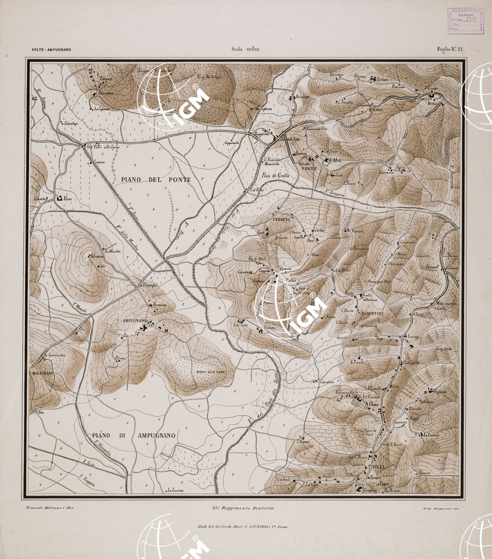 CARTA DEI DINTORNI DI SIENA COSTRUITA DAGLI UFFICIALI DEL 65° REGG.TO FANTERIA – Tavola 21