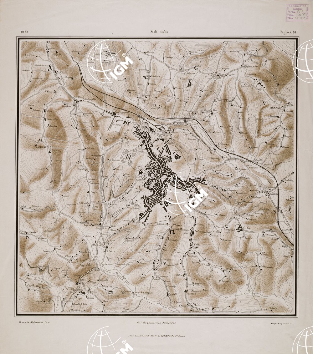 CARTA DEI DINTORNI DI SIENA COSTRUITA DAGLI UFFICIALI DEL 65° REGG.TO FANTERIA -Tavola 16