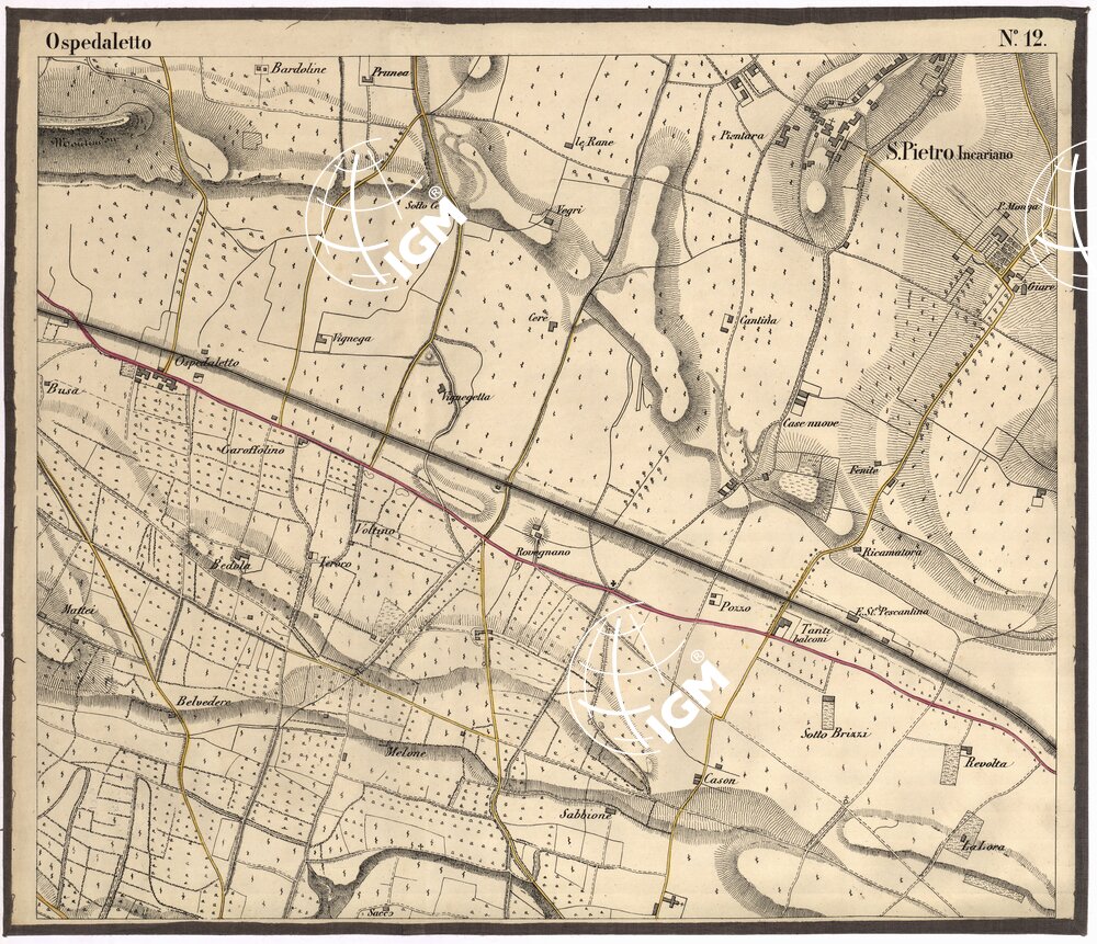 | Titolo proprio | CARTA DEI DINTORNI DI RIVOLI E PASTRENGO – Foglio 12 – Ospedaletto |