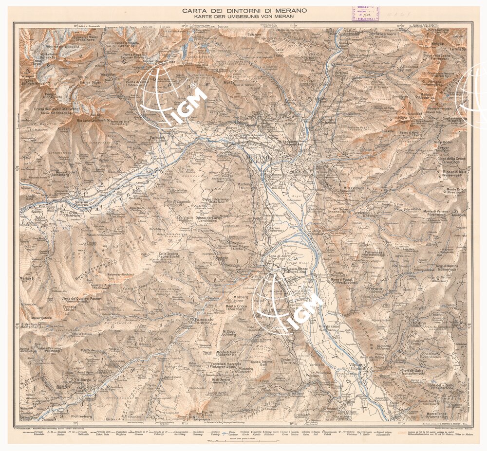 Un foglio a colori con orografia dimostrata a mezzo di curve di livello tracciate in bistro alla equidistanza di 50 m. sussidiate da sfumo, acque in azzurro, abitati e rete stradale in nero. In basso la leggenda dei segni convenzionali. Longitudini calcolate dal meridiano di Greenwich.