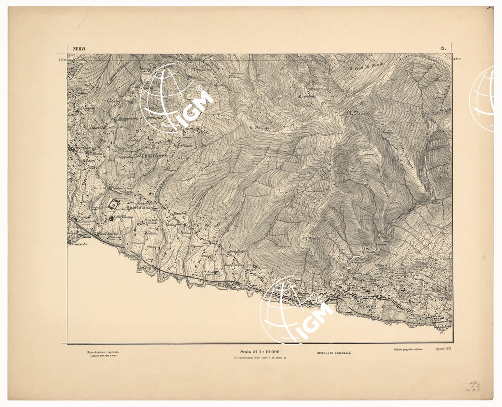 | Titolo proprio | CARTA DEI DINTORNI DI GENOVA IN 14 FOGLI DI CUI 9 RILIEVO E 5 INGRANDIMENTI – Foglio 9 – Nervi |