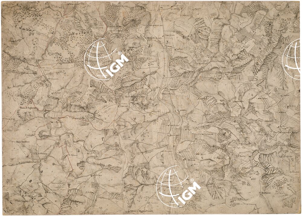 Rappresentazione orografica planimetrica. La copia è montata su cartoncino rigido e presenta il numero di inventario 5384 bis.