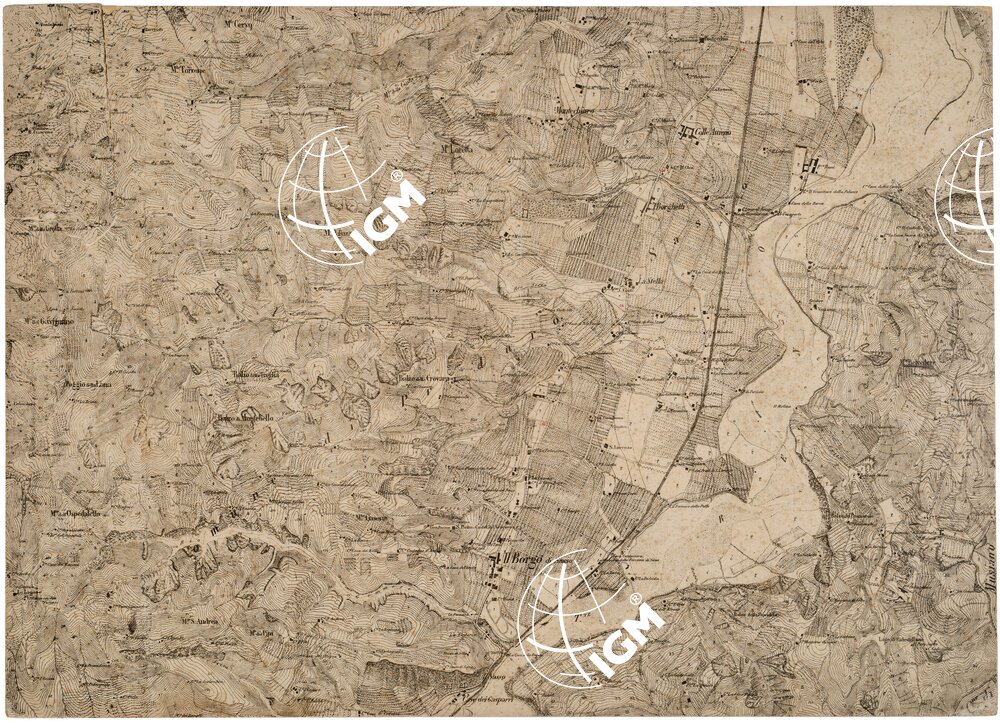 Rappresentazione orografica planimetrica. La copia è montata su cartoncino rigido e presenta il numero di inventario 5384 bis.