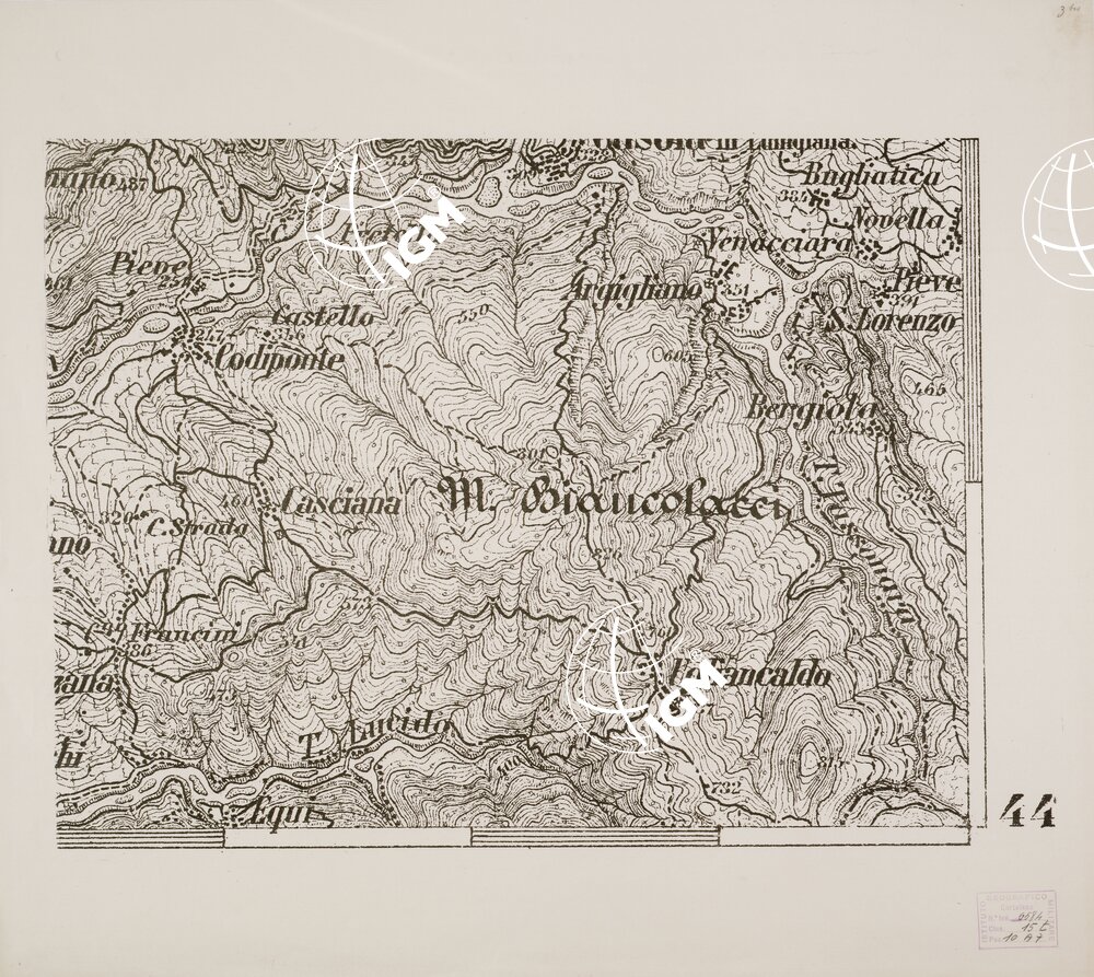 I fogli 1, 2 e 3 provengono da ingrandimenti di levate al 50.000, e gli altri da ingrandimenti di levate al 25.000. L’equidistanza delle curve è di 10 metri nei fogli 1, 2 e 3, negli altri è di 5 metri.