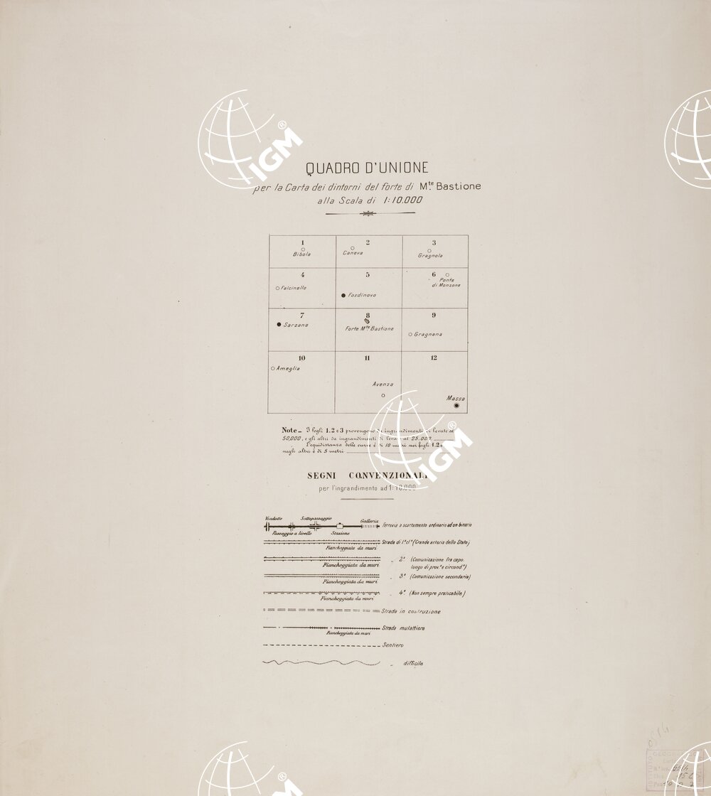 | Titolo proprio | CARTA DEI DINTORNI DEL FORTE DI MONTE BASTIONE – Quadro d'unione |