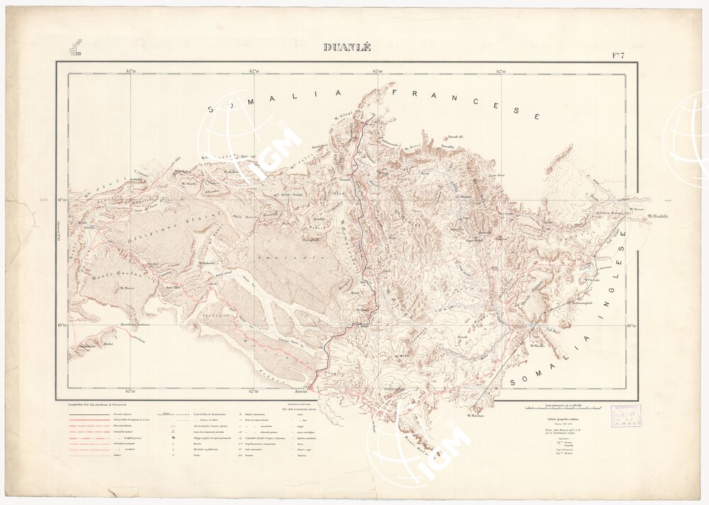 CARTA DEI CONFINI A.O.I. SOMALIA FRANCESE – Foglio 7 – Duanlé