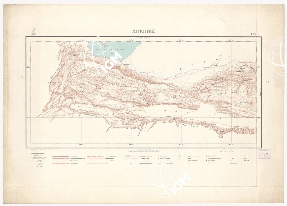Rappresentazione orografica dimostrativa ed a quote. In basso vi sono i segni convenzionali. Fotozincoincisione sistema Ponzian. I.G.M. (FI)