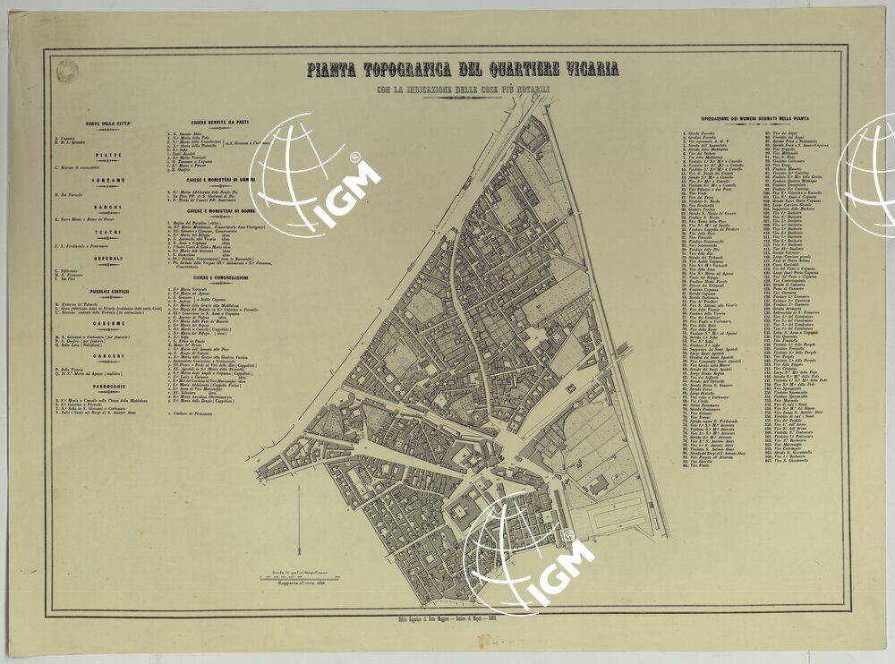 CARTA DEI DODICI QUARTIERI DI NAPOLI – PIANTA TOPOGRAFICA DEL QUARTIERE VICARIA CON LA INDICAZIONE PIU' NOTABILI.