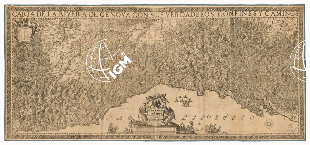Grande carta in otto fogli riuniti e montati su tela. Una copia in quattro fogli separati montati su tela a stacchi. In basso trovasi scritto “Si vendono in Milano da Marc. Ant. del Re Incisore in Rame alla Piazza de’ Mercanti presso le scuole Palatine”; segue “Autor Sculpist”. L’orografia è rappresentata col sistema prospettico a monticelli. Gli abitati più importanti sono rappresentati schematicamente in pianta: i secondari con torri e case. Sono tracciate le strade ed indicati i confini politici. Limiti: nord, Valenza; sud, Mare Ligustico (da Nizza a Motrone); ovest, Monviso; est, M. Lugo. A sinistra in alto la leggenda dei segni convenzionali. Tre scale grafiche in miglia di Genova, di Piemonte, d’Italia.