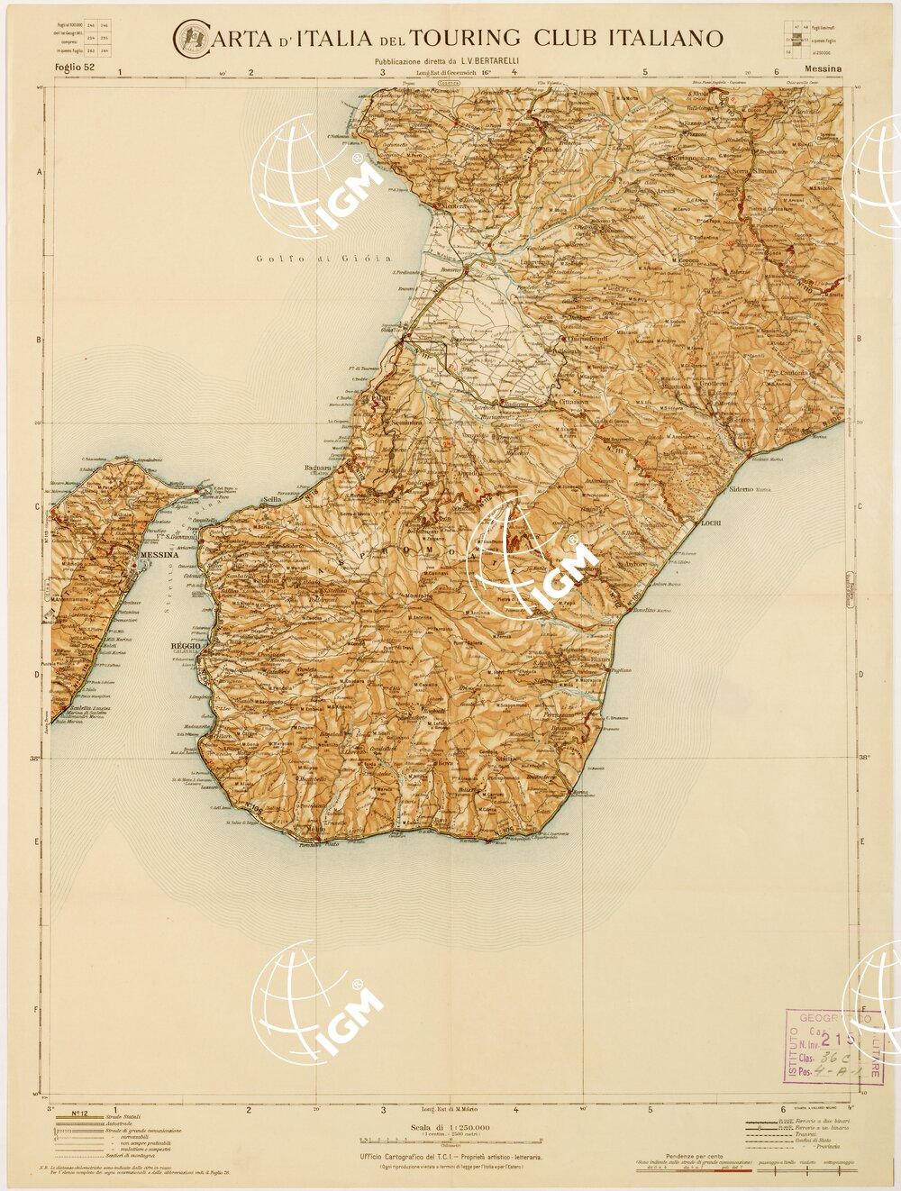 CARTA D’ITALIA DEL TOURING CLUB ITALIANO PUBBLICAZIONE DIRETTA DA L.V. BERTARELLI – Foglio 52 – Messina.