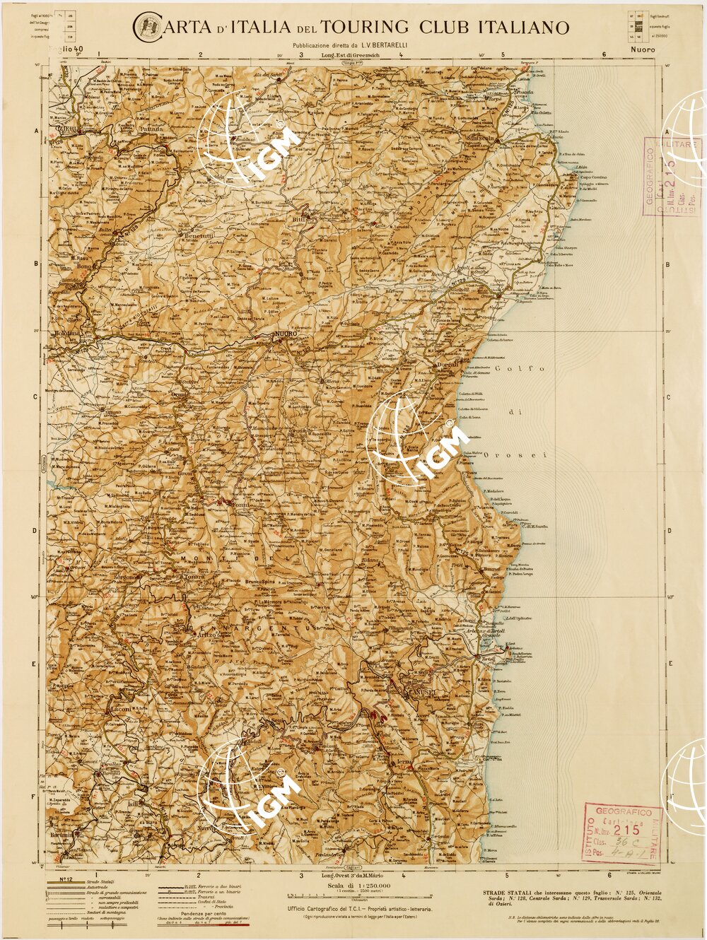 CARTA D’ITALIA DEL TOURING CLUB ITALIANO PUBBLICAZIONE DIRETTA DA L.V. BERTARELLI – Foglio 40 – Nuoro.