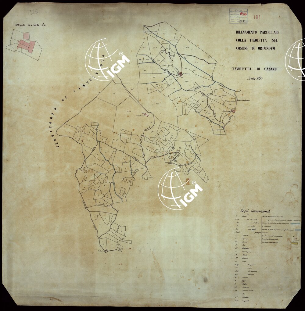 Sette minute di campagna, montate su tela. Annesso un piccolo quadro d’unione e n° 1 allegati della tavoletta Dogana Parmignola.