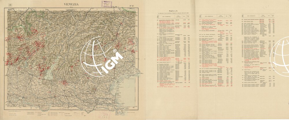 CARTA D’ITALIA CON LE INDICAZIONI DELLE CENTRALI PER LA PRODUZIONE DI ENERGIA ELETTRICA, ESISTENTI ED IN COSTRUZIONE A TUTTO L´ANNO 1920 – Foglio 8 VENEZIA