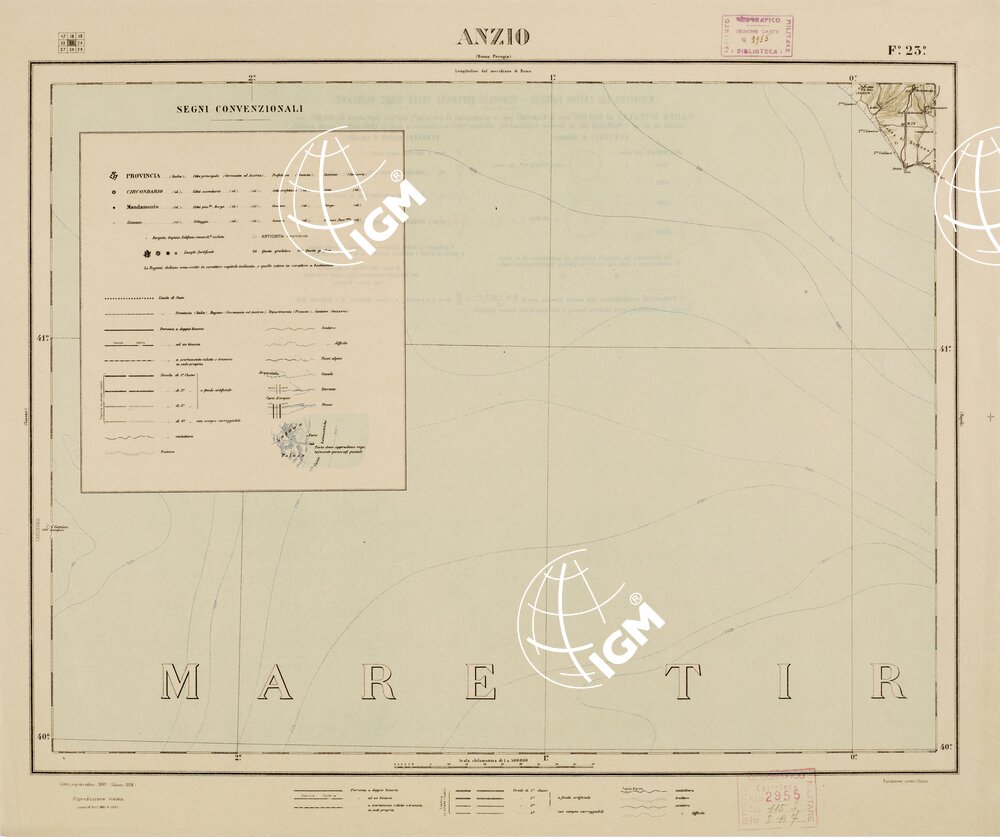 CARTA D’ITALIA CON LE INDICAZIONI DELLE CENTRALI PER LA PRODUZIONE DI ENERGIA ELETTRICA, ESISTENTI ED IN COSTRUZIONE A TUTTO L´ANNO 1920 – Foglio 23 ANZIO