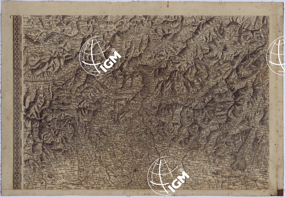 Bella carta in otto fogli incisi su rame. Proiezione conica. Orientazione normale. Rappresenta l’orografia con fine tratteggio a luce obliqua. Assai ricca di dettagli topografici. Il foglio n° 1 contiene il titolo, la leggenda dei segni convenzionali e una nota sulla costruzione della carta. Il foglio n° 3 contiene un quadro amministrativo-statistico.