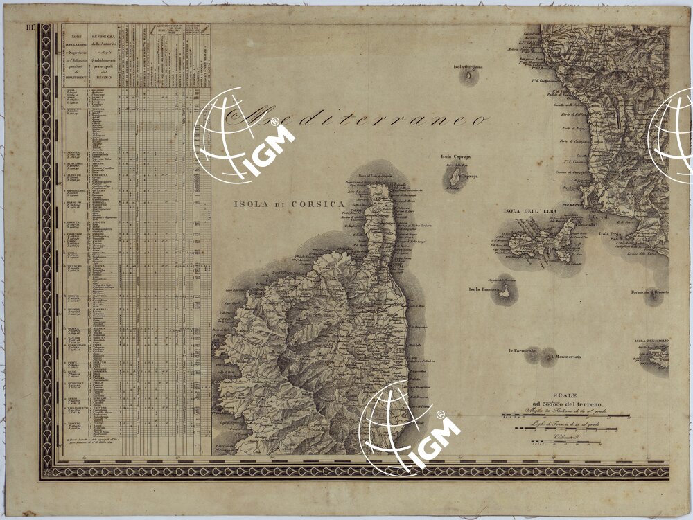 CARTA AMMINISTRATIVA DEL REGNO D’ITALIA CO’ SUOI STABILIMENTI POLITICI, MILITARI, CIVILI, E RELIGIOSI E CON UNA PARTE DEGLI STATI LIMITROFI. COSTRUTTA NEL DEPOSITO DELLA GUERRA PER ORDINE DEL MINISTRO DELLA GUERRA E MARINA NELL’ANNO MDCCCXI -TAVOLA III
