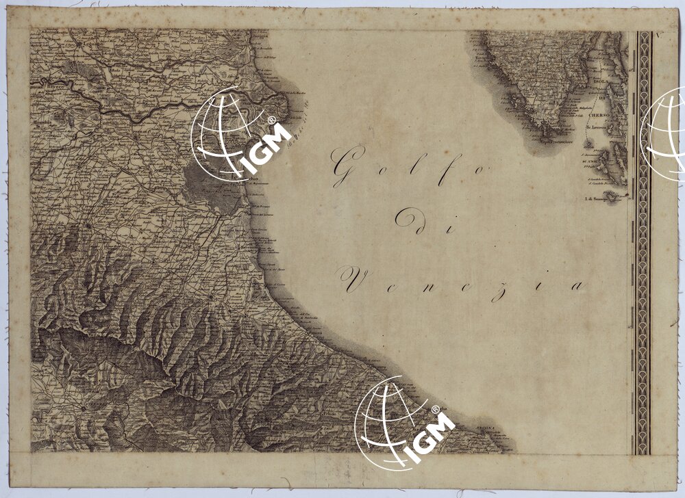 CARTA AMMINISTRATIVA DEL REGNO D’ITALIA CO’ SUOI STABILIMENTI POLITICI, MILITARI, CIVILI, E RELIGIOSI E CON UNA PARTE DEGLI STATI LIMITROFI. COSTRUTTA NEL DEPOSITO DELLA GUERRA PER ORDINE DEL MINISTRO DELLA GUERRA E MARINA NELL’ANNO MDCCCXI -TAVOLA V