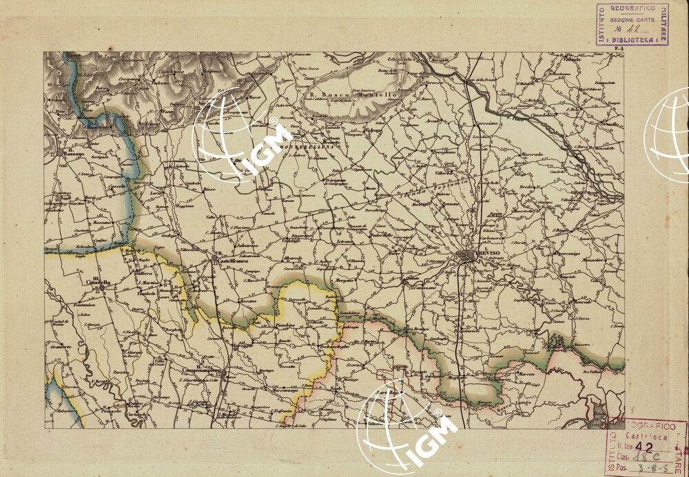 Carta Corografica Itineraria e Statistica del Regno Lombardo Veneto divisa in 48 fogli sull´ampia scala di 172800 del naturale coll´indicazione delle distanze che corrono da paese a paese segnate sopra ogni tronco di strada in miglia geografiche ital. Da