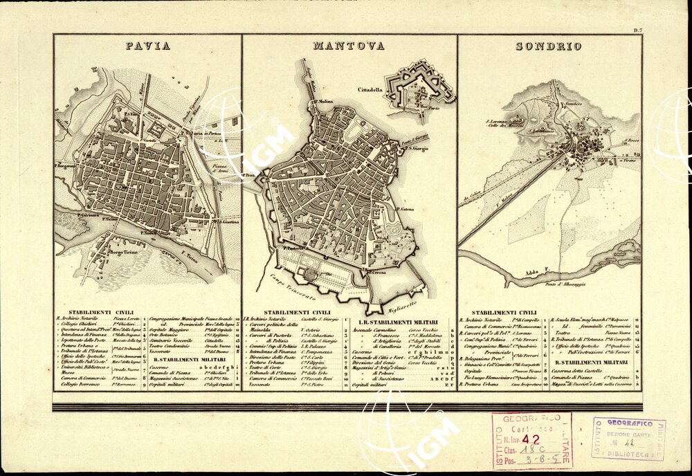 CARTA COROGRAFICA ITINERARIA E STATISTICA DEL REGNO LOMBARDO-VENETO… – D 7 Pavia-Mantova-Sondrio