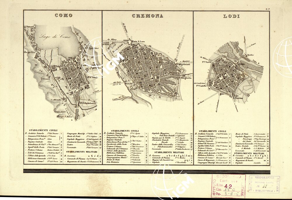 CARTA COROGRAFICA ITINERARIA E STATISTICA DEL REGNO LOMBARDO-VENETO… – C 7 Como-Cremona-Lodi