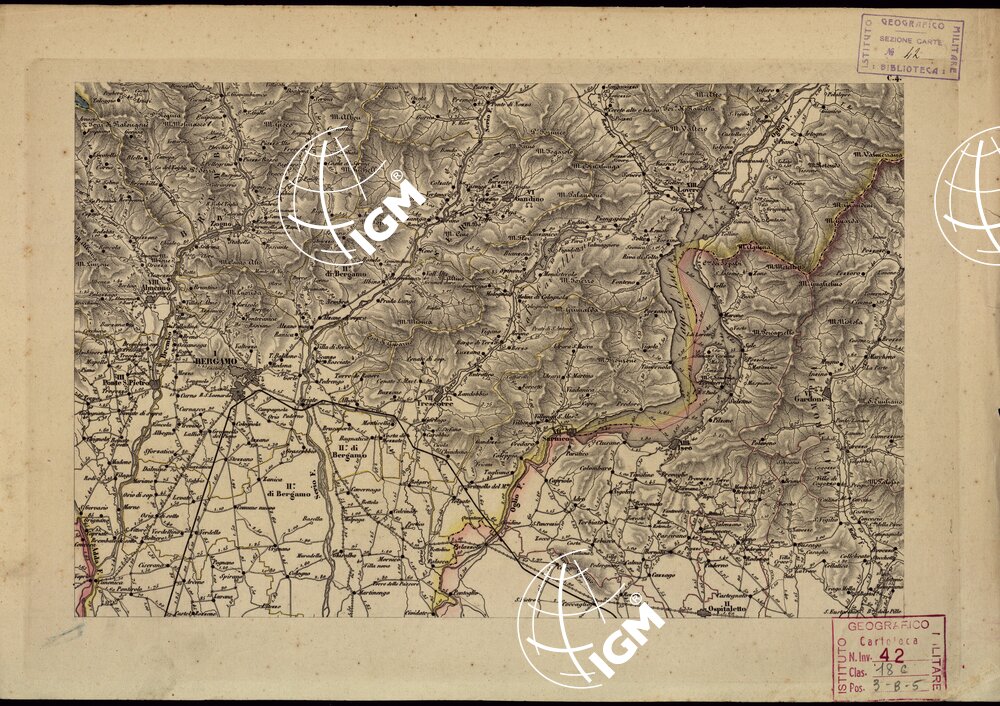 … DIVISA IN 48 FOGLI SULL’AMPIA SCALA DI 1:172.800 DEL NATURALE COLL’INDICAZIONE DELLE DISTANZE CHE CORRONO DA PAESE A PAESE SEGNATE SOPRA OGNI TRONCO DI STRADA IN MIGLIA GEOGRAFICHE ITALIANE DA 60 AL GRADO. COMPILATA DA ALESSANDRO MARIDATI. RIVEDUTA E AUTENTICATA DAI SINGOLI I. I. R. R. UFFICI PROVINCIALI DELLE PUBBLICHE COSTRUZIONI. MILANO 1858.