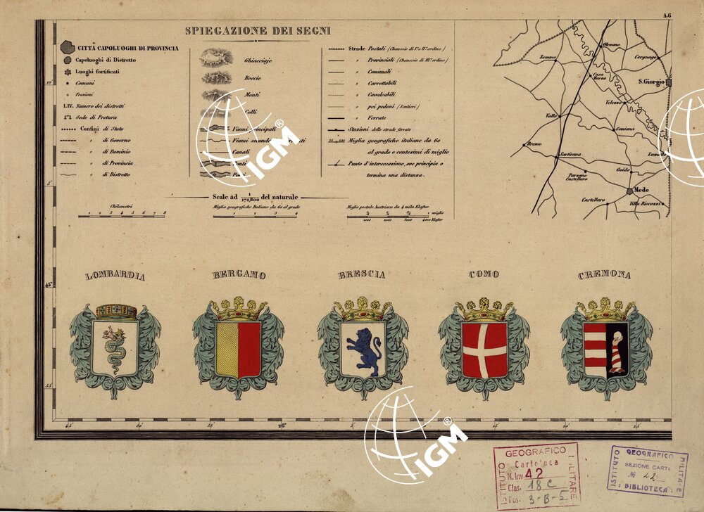 CARTA COROGRAFICA ITINERARIA E STATISTICA DEL REGNO LOMBARDO-VENETO… – A 6 – stemmi e spiegazione dei segni