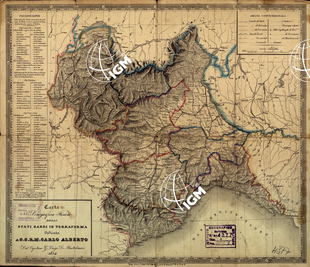 CARTA COROGRAFICA FISICA DEGLI STATI SARDI IN TERRAFERMA..