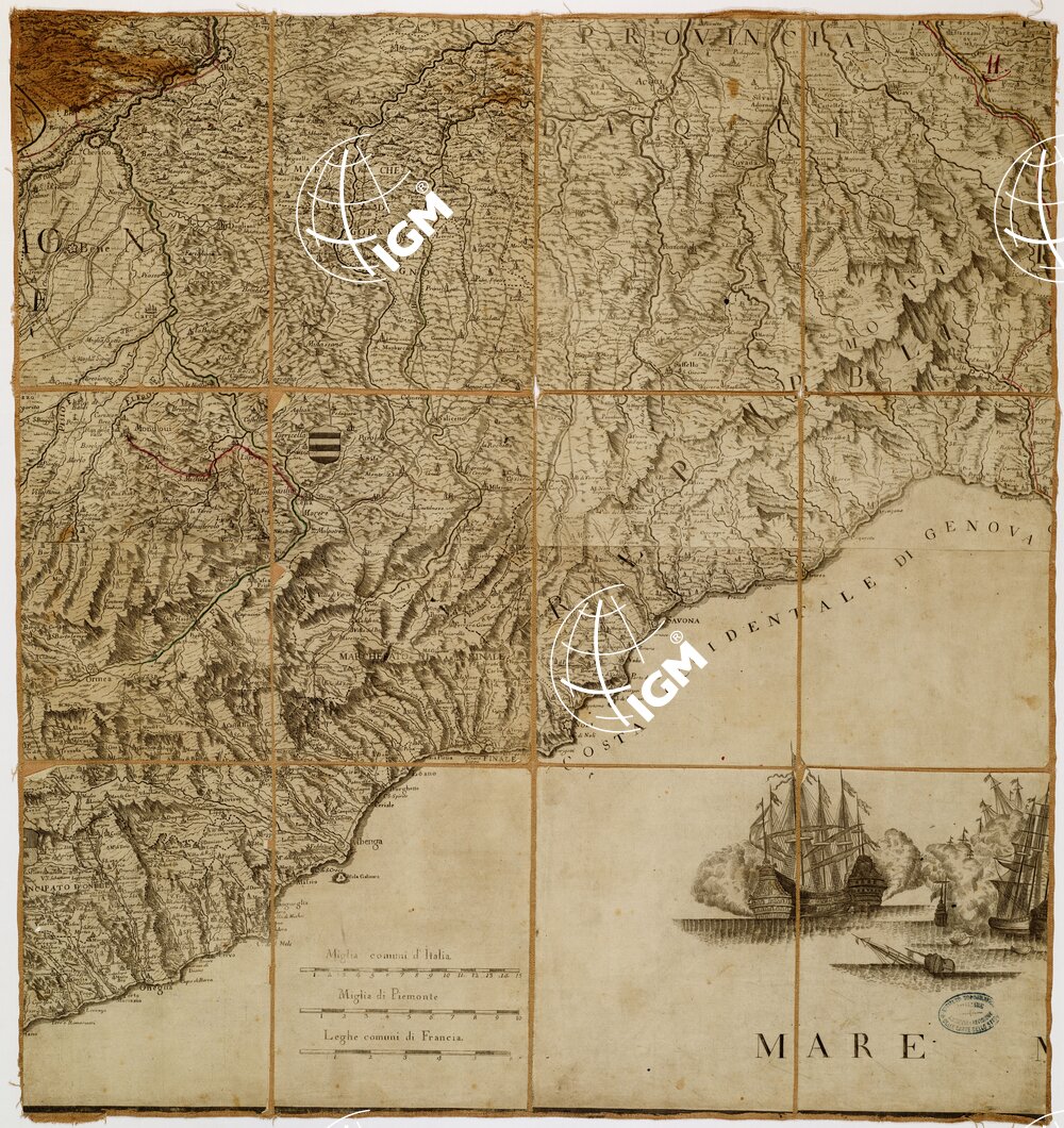 Nuova edizione della così detta “Carta di Madama Reale” costruita dall’ingegnere cartografo G. T. Borgonio disegnatore e calligrafo, addetto fin dal 1650 alla corte Sabauda, e pubblicata nel 1680 in 15 fogli incisi su rame. La carta del Borgonio rappresenta un grande progresso nella cartografia del Piemonte essendo essa di gran lunga superiore alle precedenti produzioni cartografiche di quella regione. Per quanto non poggiata su una vera e propria base geometrica, sì da doverne accusare l’inesattezza nell’orientamento e nella misura delle distanze, essa nondimeno è particolarmente pregevole sia per la ricchezza di informazioni relative agli abitati, strade, corsi d’acqua, sia per la rappresentazione dell’orografia efficacemente dimostrata alla cavaliera. La carta del Borgonio rimase famosa ed apprezzata per circa un secolo e mezzo: ad essa si ispirarono successivi cartografi come il Coronelli, De Fer, Mortier, R. de Vaugondy. Divenuta rarissima se ne pubblicarono nuove edizioni una delle quali a Londra nel 1765 a cura di A. Dury, e l’altra a Torino nel 1772 a cura dell’incisore piemontese Stagnone tratta dagli stessi rami del Borgonio ma corretti ed arricchiti, e con l’aggiunta di nuovi sì da estendere la carta alla Liguria e a parte della Lombardia.