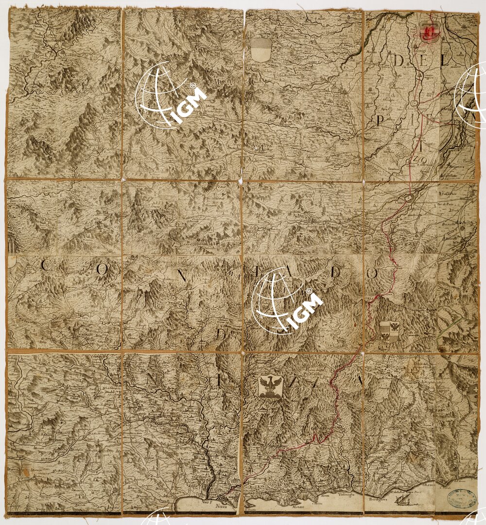 Nuova edizione della così detta “Carta di Madama Reale” costruita dall’ingegnere cartografo G. T. Borgonio disegnatore e calligrafo, addetto fin dal 1650 alla corte Sabauda, e pubblicata nel 1680 in 15 fogli incisi su rame. La carta del Borgonio rappresenta un grande progresso nella cartografia del Piemonte essendo essa di gran lunga superiore alle precedenti produzioni cartografiche di quella regione. Per quanto non poggiata su una vera e propria base geometrica, sì da doverne accusare l’inesattezza nell’orientamento e nella misura delle distanze, essa nondimeno è particolarmente pregevole sia per la ricchezza di informazioni relative agli abitati, strade, corsi d’acqua, sia per la rappresentazione dell’orografia efficacemente dimostrata alla cavaliera. La carta del Borgonio rimase famosa ed apprezzata per circa un secolo e mezzo: ad essa si ispirarono successivi cartografi come il Coronelli, De Fer, Mortier, R. de Vaugondy. Divenuta rarissima se ne pubblicarono nuove edizioni una delle quali a Londra nel 1765 a cura di A. Dury, e l’altra a Torino nel 1772 a cura dell’incisore piemontese Stagnone tratta dagli stessi rami del Borgonio ma corretti ed arricchiti, e con l’aggiunta di nuovi sì da estendere la carta alla Liguria e a parte della Lombardia.