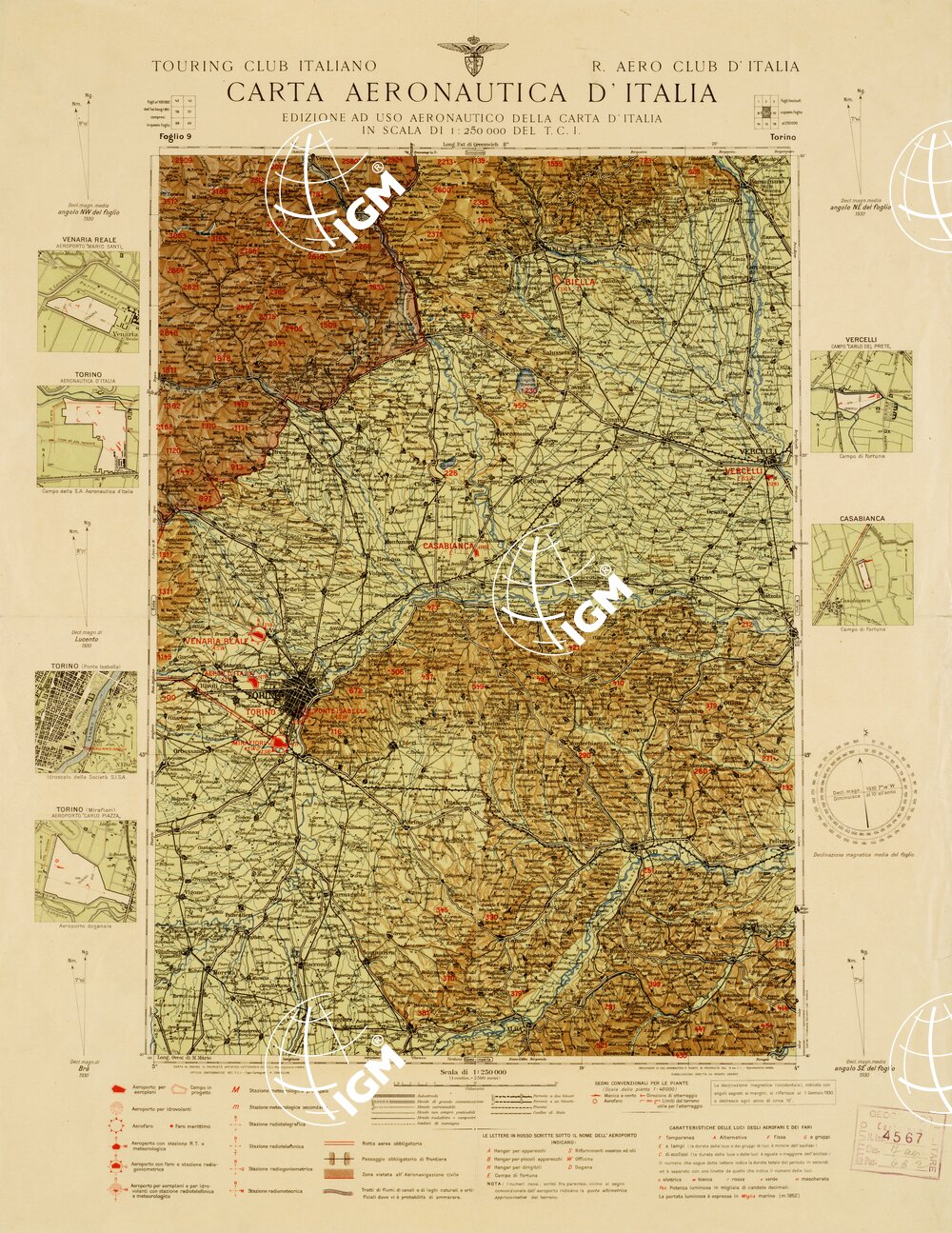 CARTA AERONAUTICA D’ITALIA – Foglio 9 TORINO