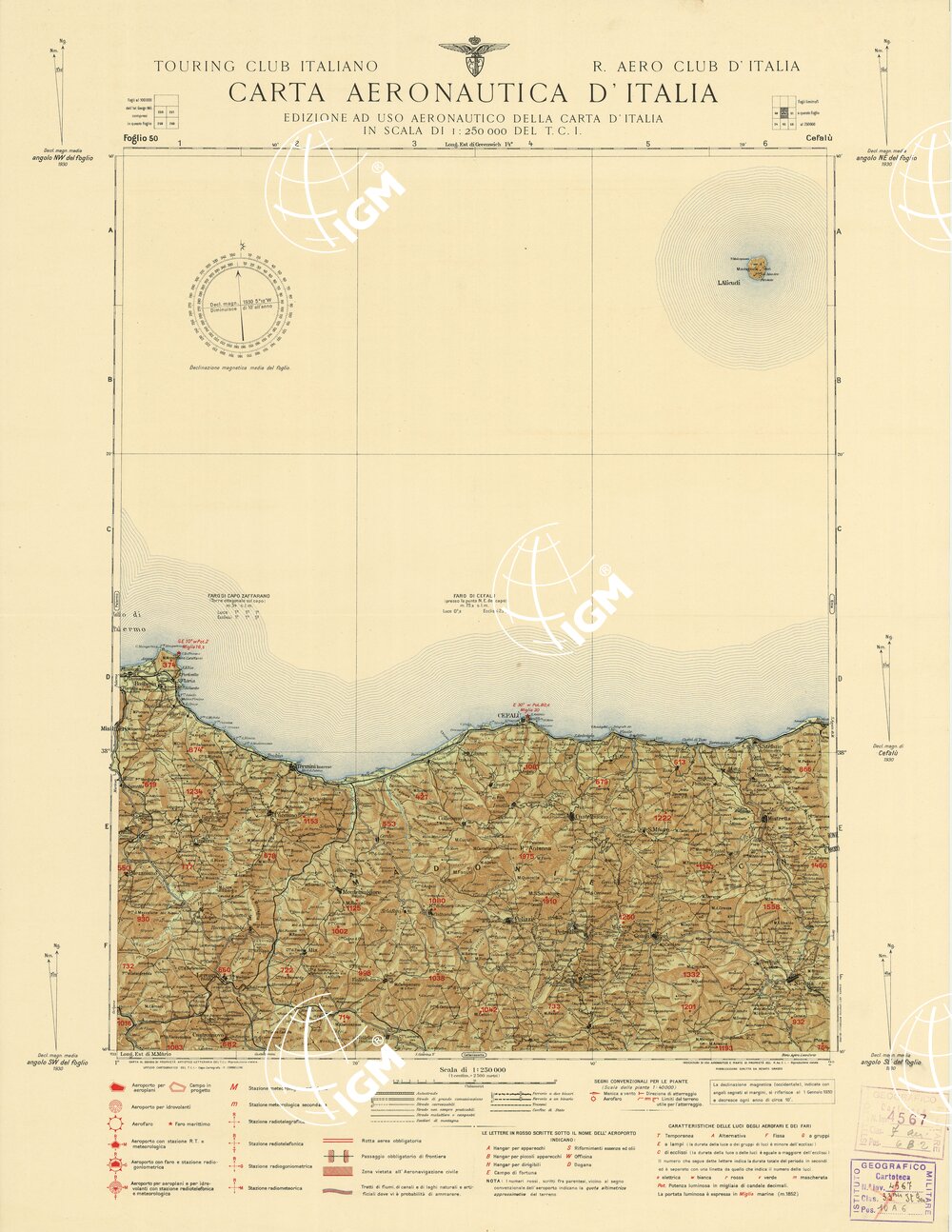 CARTA AERONAUTICA D’ITALIA – Foglio 50 CEFALU’