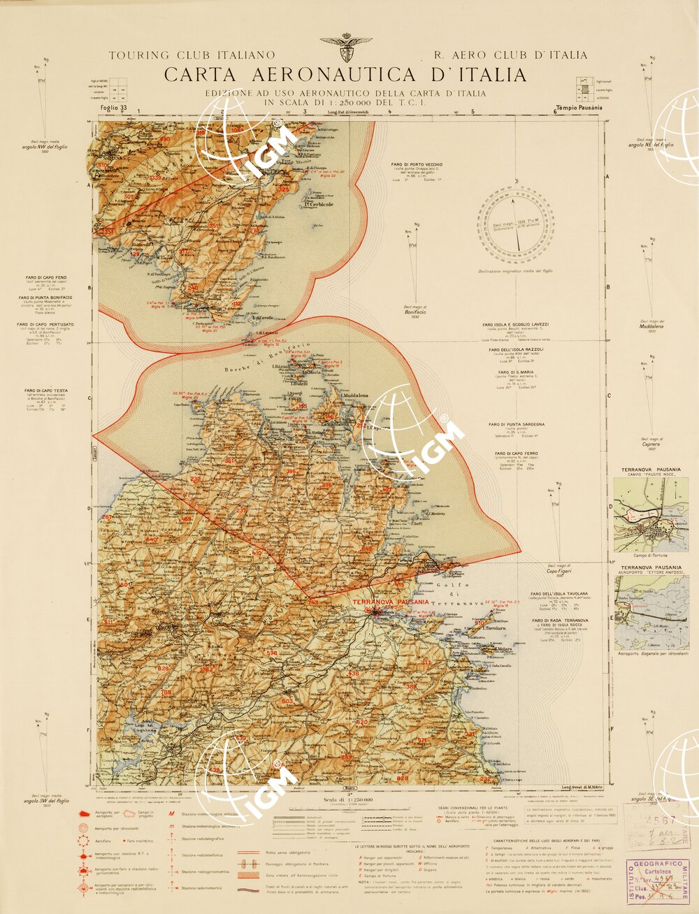 CARTA AERONAUTICA D’ITALIA – Foglio 33 TEMPIO PAUSANIA