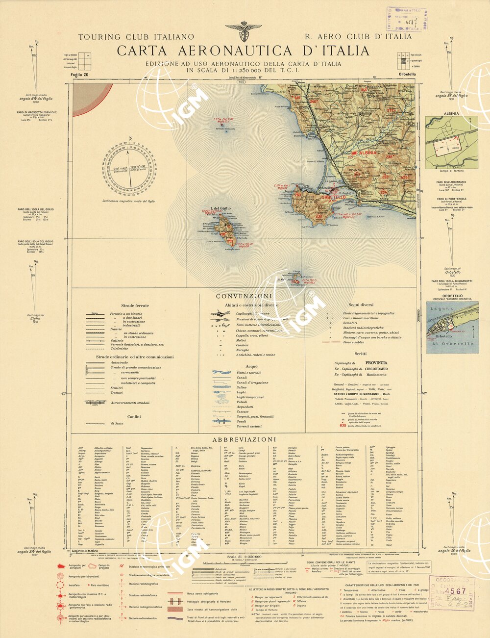 CARTA AERONAUTICA D’ITALIA – Foglio 26 ORBETELLO