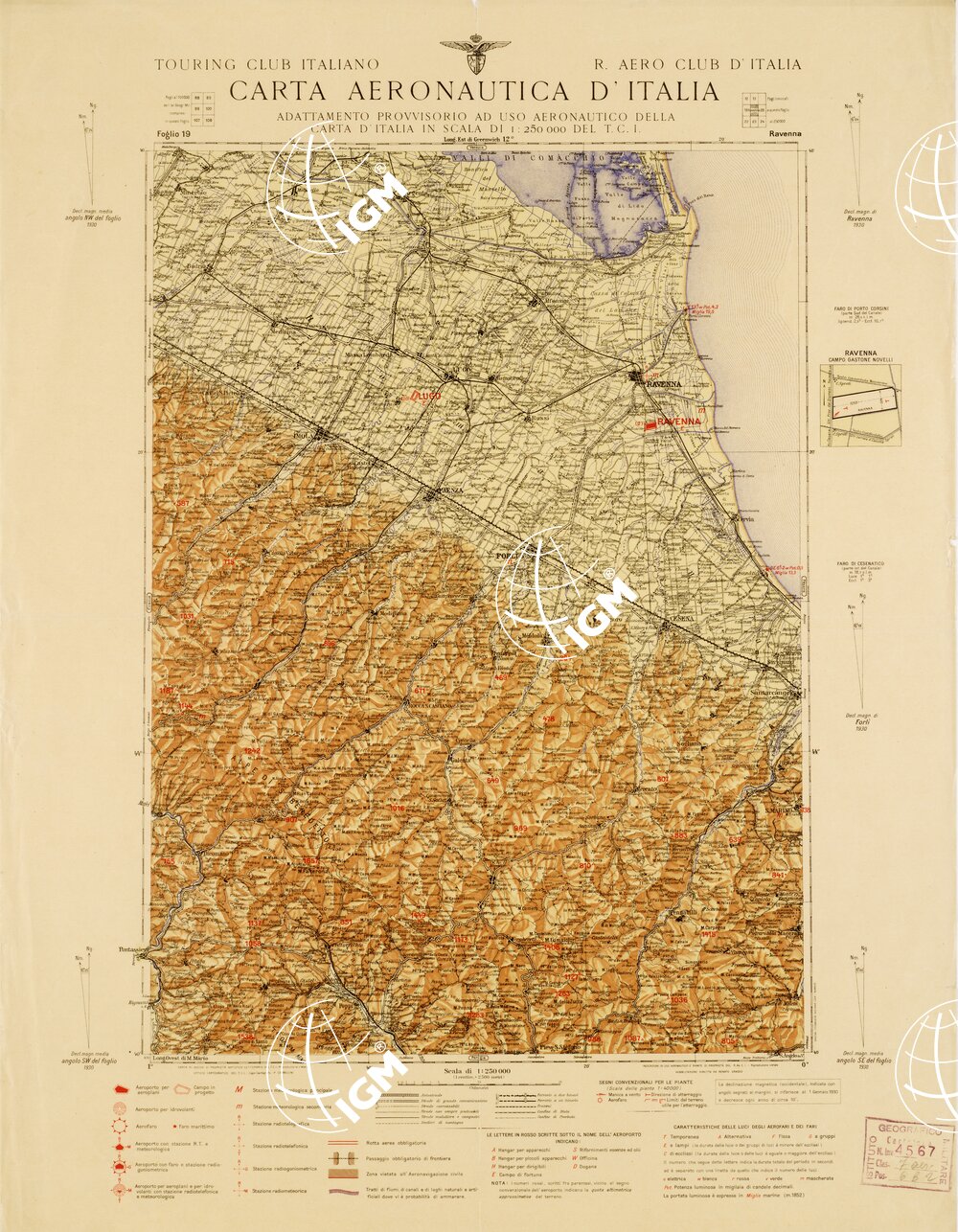 CARTA AERONAUTICA D’ITALIA – Foglio 19 RAVENNA