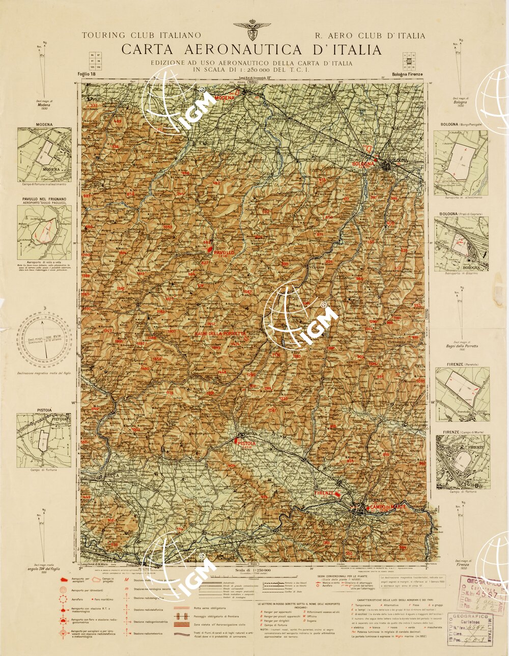 CARTA AERONAUTICA D’ITALIA – Foglio 18 BOLOGNA FIRENZE