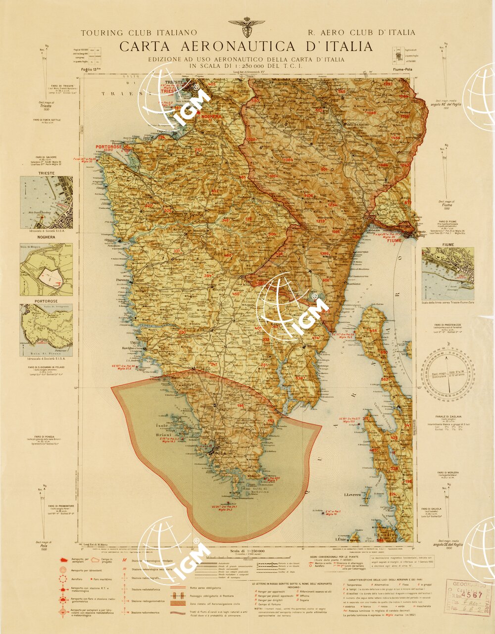 CARTA AERONAUTICA D’ITALIA – Foglio 13 BIS FIUME – POLA