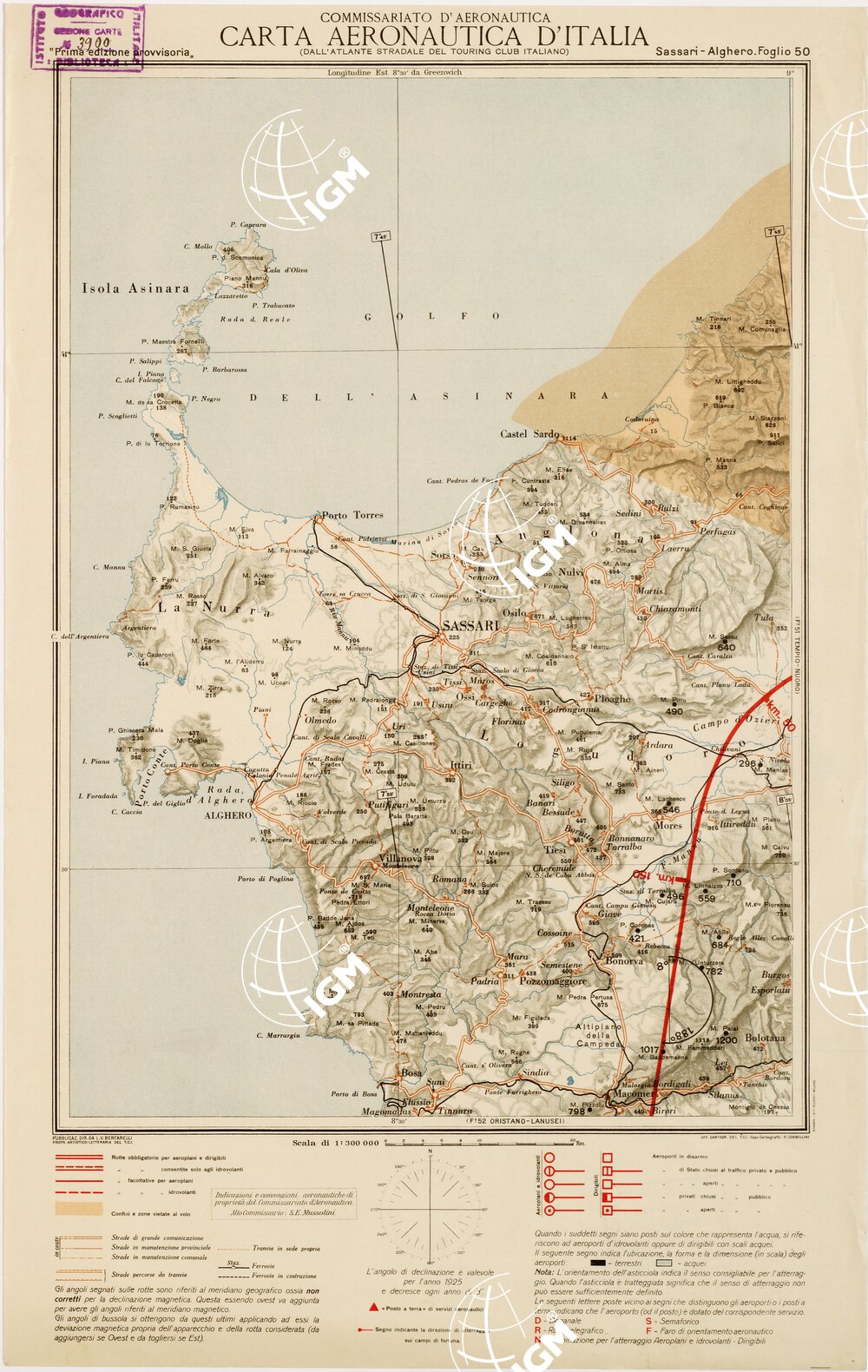 CARTA AERONAUTICA D’ITALIA – Foglio 50 SASSARI-ALGHERO