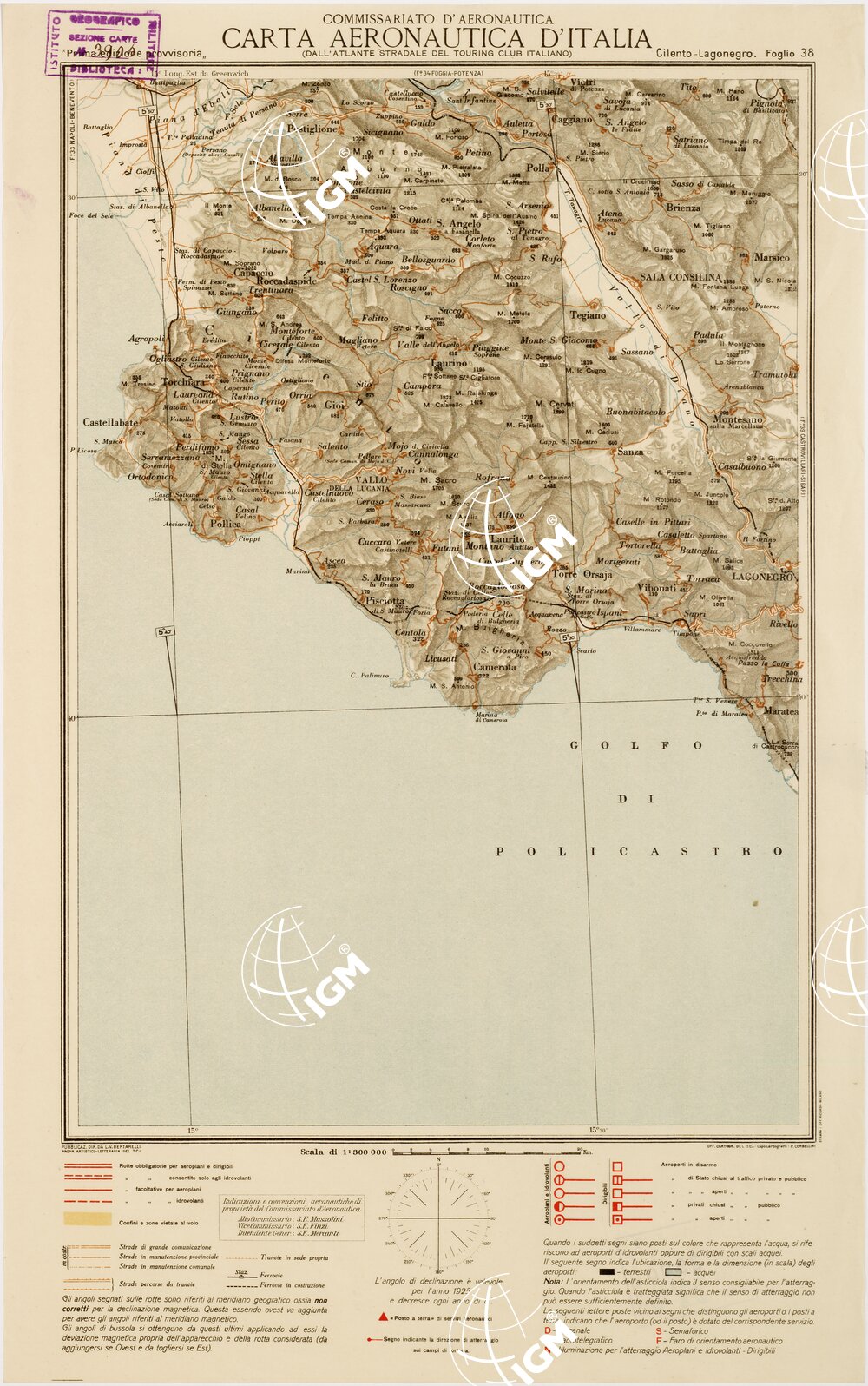 CARTA AERONAUTICA D’ITALIA – Foglio 38 CILENTO- LAGO NEGRO