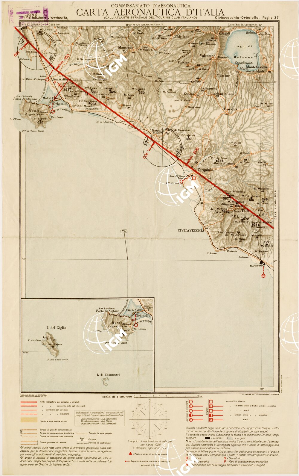 CARTA AERONAUTICA D’ITALIA – Foglio 27 CIVITAVECCHIA-ORBETELLO