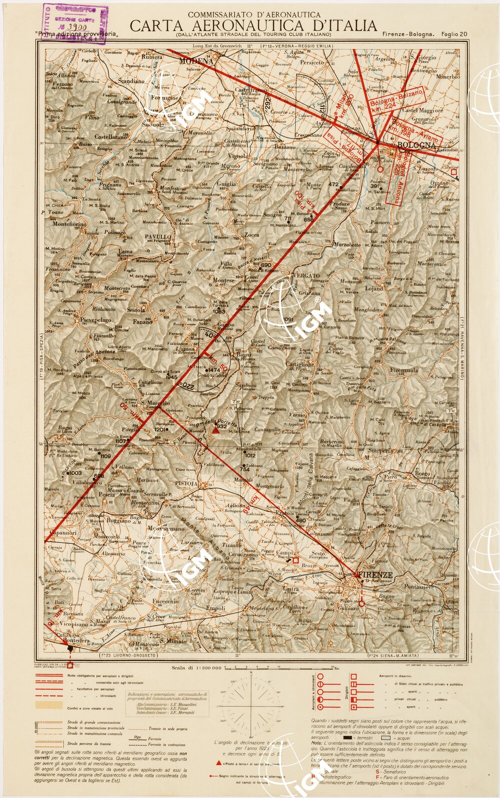 CARTA AERONAUTICA D’ITALIA – Foglio 20 FIRENZE-BOLOGNA