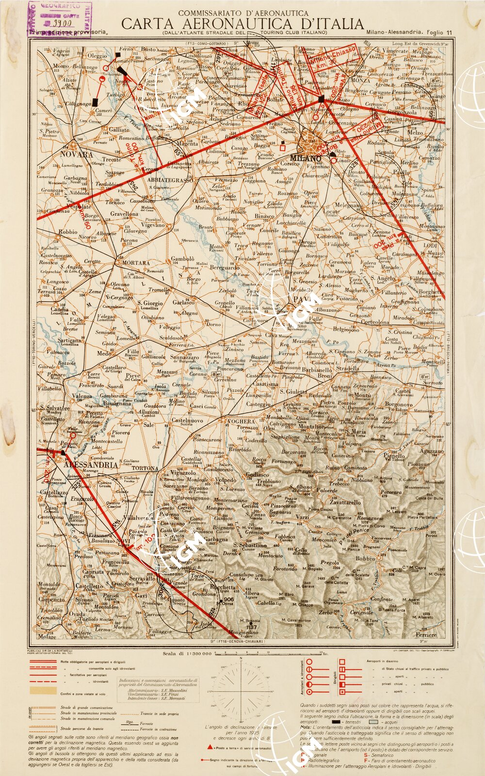CARTA AERONAUTICA D’ITALIA – Foglio 11 MILANO-ALESSANDRIA