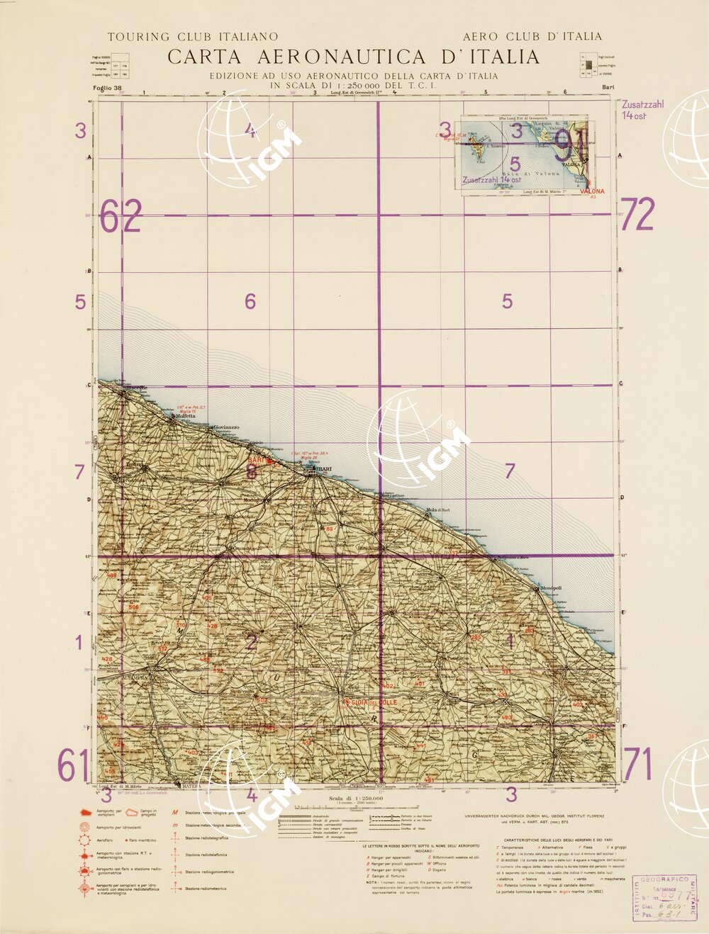 CARTA AERONAUTICA D’ITALIA (EDIZIONE TEDESCA) – Foglio 38 BARI